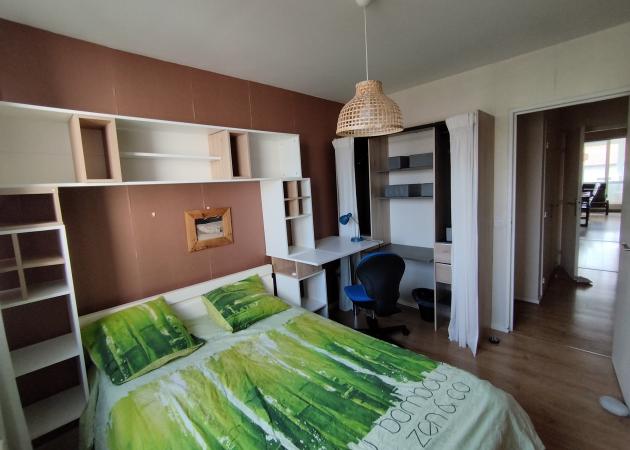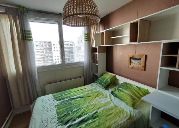 Chambre de 9 M2, avec lit 2 places, dressing, petit bureau, donnant sur cours intérieur de la résidence..