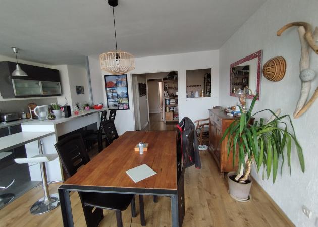 Cuisine équipée, salle de bain, séjour, grand balcon côté sud, wifi télé. garage à vélo en pied d'immeuble. un court de tennis à disposition.