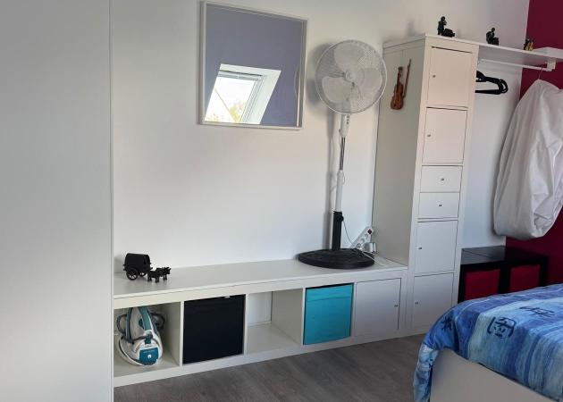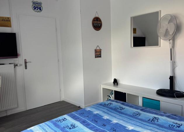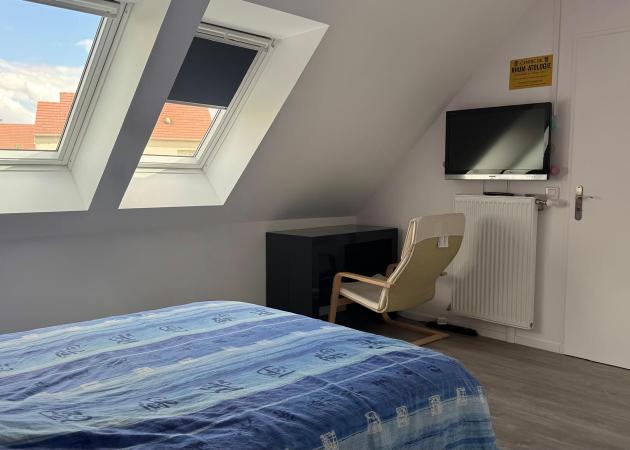 La chambre est équipée d'un lit double 140X190; de placards de rangement, 1 TV et un bureau.