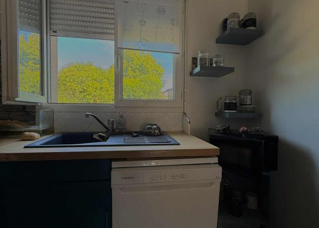 Salle de bain ainsi que cuisine a partager avec les propriétaires