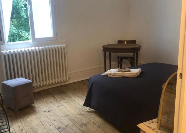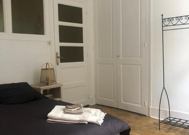 Grande chambre meublée avec literie neuve en 140, à l’écart grâce à une antichambre par laquelle vous accédez. La Sdb (toilettes séparées) est partagée (serviettes fournies). Accès à votre convenance à la cuisine qui donne sur le balcon. Calme et autonomie. Quartier Chorier Berriat ; arrêt bus au pied de la maison, à mi-chemin entre les trams AB et C et à 10min à pied de la gare et à vélo de l’hyper centre.