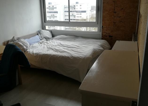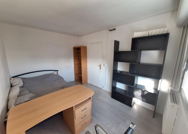 La chambre disponible est meublée avec un lit 140x190, elle fait environ 10m2. Multiples rangements a l' intérieur et aussi dans des placards dans l apparement. Il y a 2 salles de bain, un grand salon & cuisine à partager.