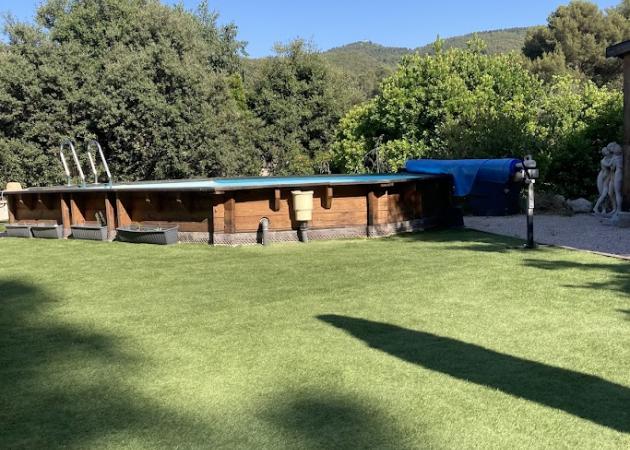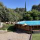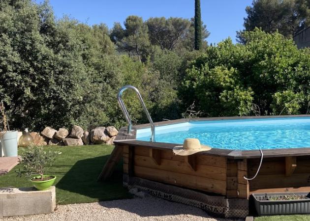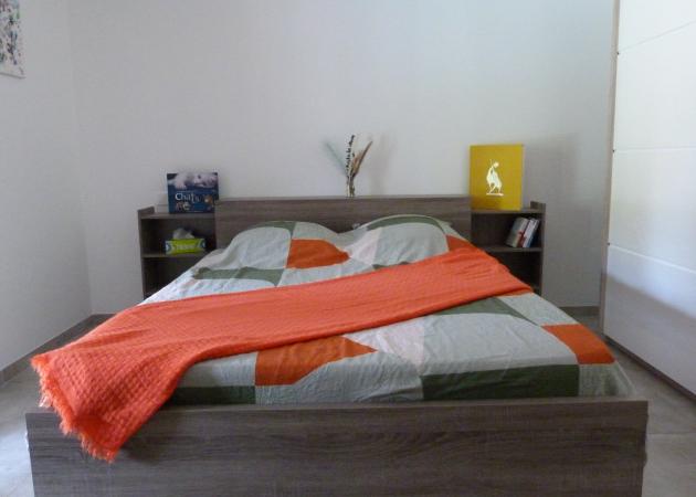 La chambre donne sur une terrasse équipée d’une pergola, vous aurez accès au jardin et à la piscine aux beaux jours.