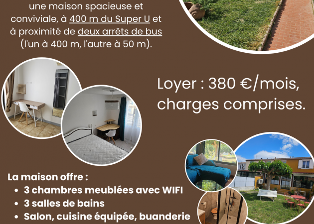 - Charges 30 euros par mois/personne : (eau/électricité/ wifi)