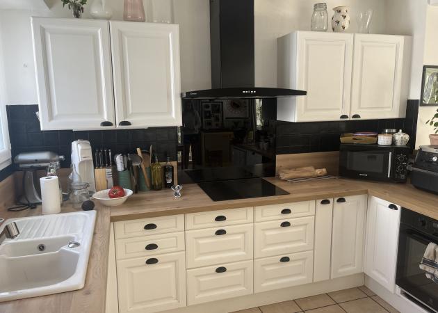 La maison comprend deux salles de bain, dont une partagée avec les voyageurs.