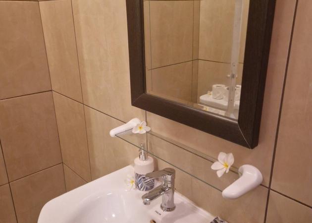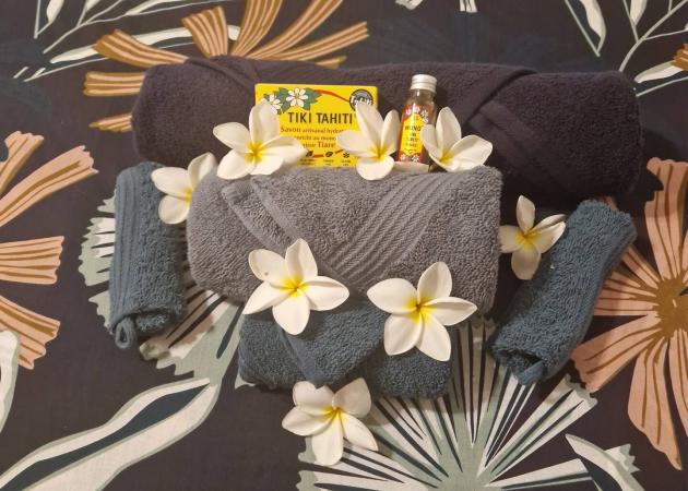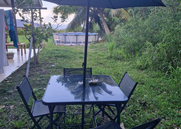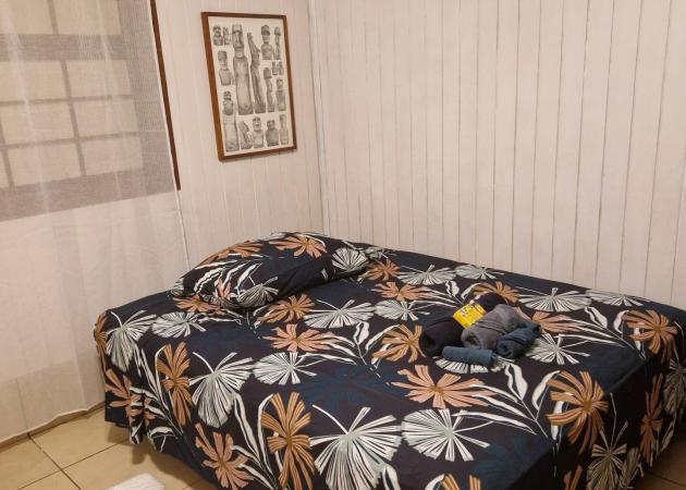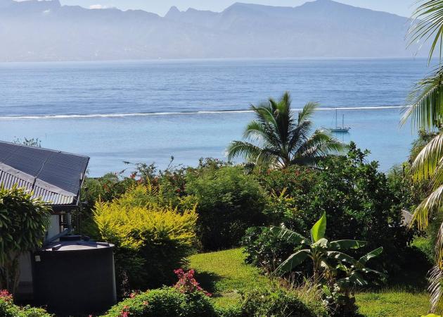 Chambre avec un lit Queen size et un canapé convertible très confortable. Possibilité d'être d'être 4 si vous ne craignez pas la proximité avec supplément à partir du troisième voyageur mais gratuit pour les moins de 12 ans !un grand placard. possibilité de mettre un lit parapluie pour les touts petits! une salle d'eau avec une grande douche lavabo et toilettes. une kitchenette privative vous permettant de vous faire des petits repas. Elle est équipée d'un micro onde une machine à café expresso, une machine à café à filtres, un grille pain, une bouilloire, un réfrigérateur, une plaque de cuisson, tout le nécessaire pour prendre ses repas. vous pourrez déguster vos repas dans votre jardin privatif. une machine à laver est mise à votre disposition. Profitez de la piscine d e10m par 5m avec vue sur le lagon et Tahiti