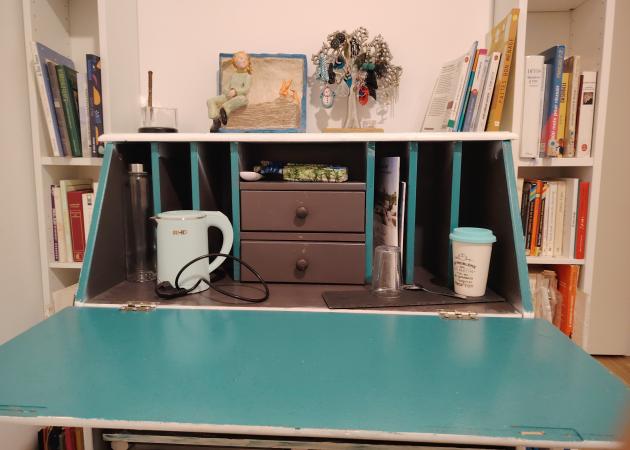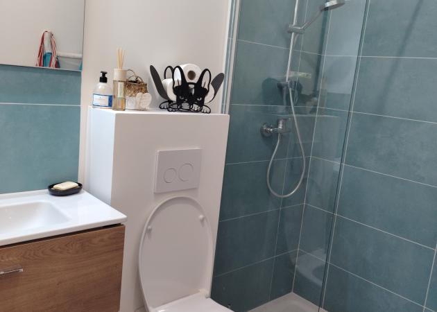 Chambre avec salle de douche et toilettes privées donnant sur un jardin au calme dans un appartement tranquille habité par ma fille et moi.