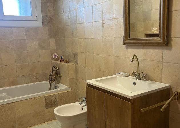 L’appartement dispose d’une grande salle de bain équipée d’une douche et d’une baignoire, ainsi que de deux cabinets de toilette séparés.