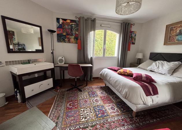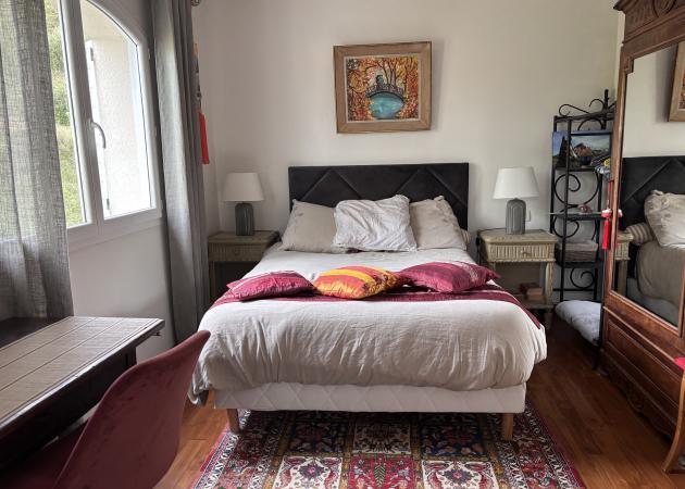 Nous proposons une chambre spacieuse à louer dans notre villa, située dans un cadre agréable et verdoyant. Vous y trouverez tout l'espace nécessaire pour vous sentir à l'aise, avec en prime l'accès à notre grand jardin arboré et à la piscine.