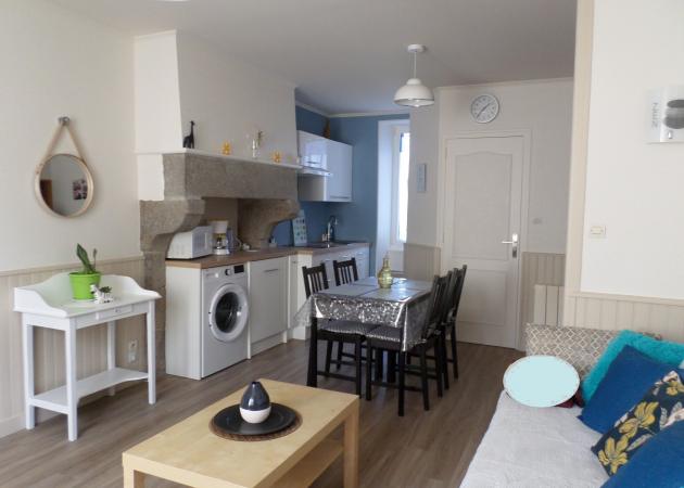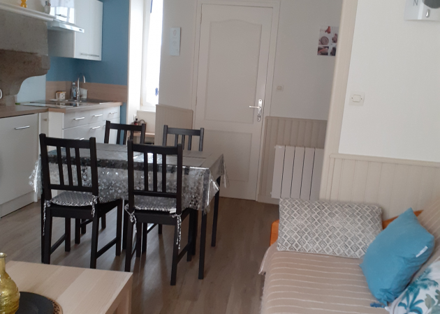 L'hébergement de 36 m2 est calme et lumineux, il est situé au 2éme étage sans ascenseur, composé d'un salon ouvert sur une cuisine équipée : micro-onde, combiné-congélateur, induction, cafetière, bouilloire électrique, une chambre avec lit de 140x190, rangement et bureau. S.D'eau avec douche, vasque et séche cheveux, WC séparé