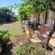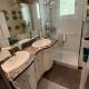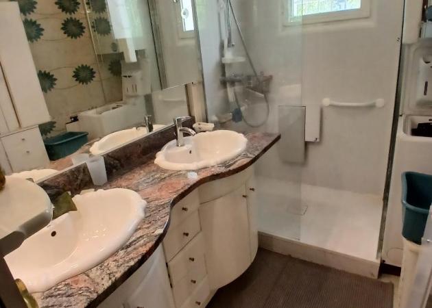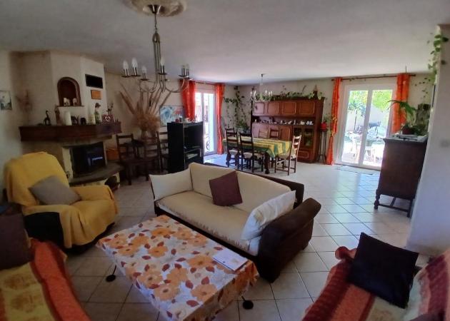 Vous avez accès au grand salon/salle à manger qui fait 44 m2, à la cuisine, à la salle de bain équipée d'une douche récente ainsi qu'aux espaces verts et terrasse entourant la maison sur trois côtés.