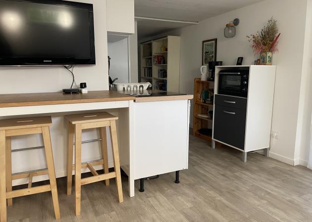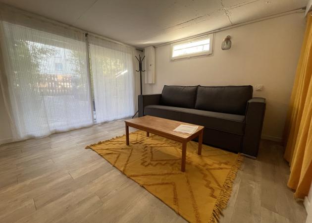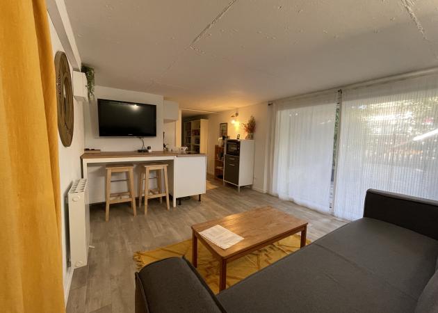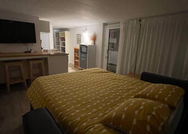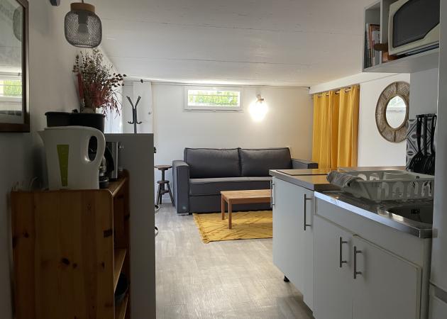 Appartement aménagé au rez de chaussée de notre maison dans lequel nous serions heureux de vous recevoir :) Le logement a sa propre entrée et il est isolé du reste de la maison. Le studio comprend une grande pièce principale avec un canapé lit (véritable sommier et matelas de qualité) avec son coin cuisine, une salle de bain/wc et un bout de verdure à l’écart de notre propre jardin.