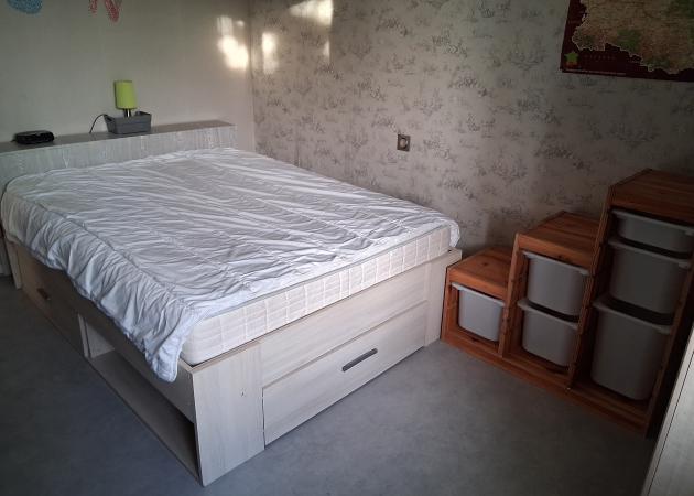 Lit de 140 avec draps fournis. Prévoir serviettes de toilette.
