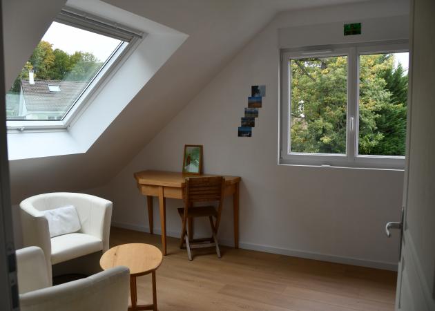 Attention, il ne s'agit pas d'un logement partagé mais bien d’une chambre chez l'habitant. Vous serez chez vous dans la chambre, située à l'étage, et aurez accès à la salle de bains au RDC, partagée avec les enfants. Vous pourrez aller comme vous le souhaitez dans le jardin et dans la véranda. Pour les temps de repas, vous aurez accès à la salle à manger.