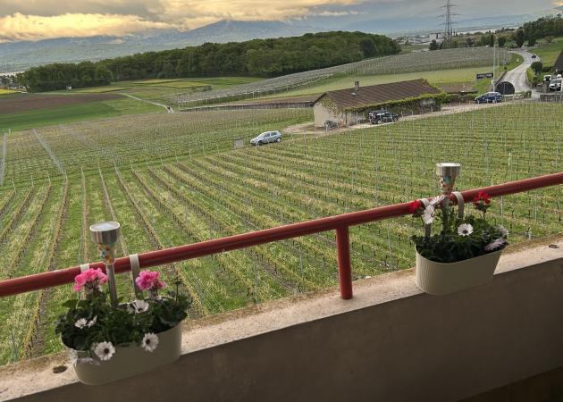 Jolie appartement dans un village très calme Partager un bureau en plus de la chambre vue magnifique depuis le salon et balcon les alps et le mont blanc et les vignes!