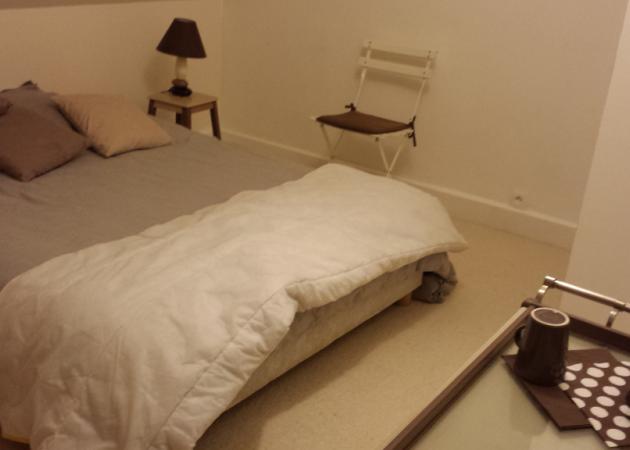 Jolie chambre sous les toits dans une maison ancienne située dans un quartier classé. Elle est claire dans les tons taupe et blanc très zen. A disposition également une salle de bains fraichement rénovée et des WC privatifs. (espace partagé si l'autre chambre est louée) Un petit salon est à disposition avec un micro-ondes, un réfrigérateur et de la vaisselle. vous y trouverez aussi un canapé confortable pour vous poser.