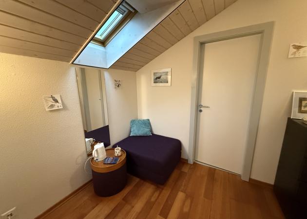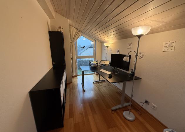 Dans ces 20 m2, il y a un espace nuit, repos et bureau. Elle se trouve au 2e étage de la maison. Vous avez accès au jardin, à la cuisine.