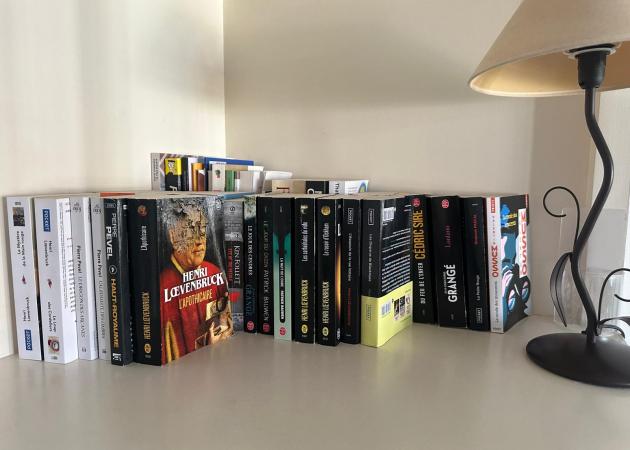 1 lit en 140 cm, 1 bureau, 1 chaise, 1 grande armoire avec 1 penderie, étagères