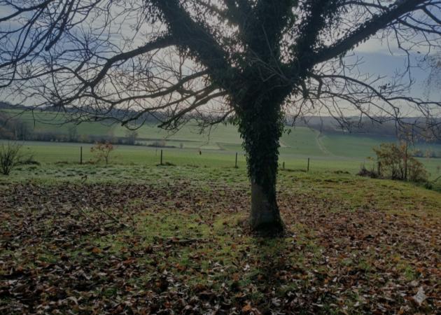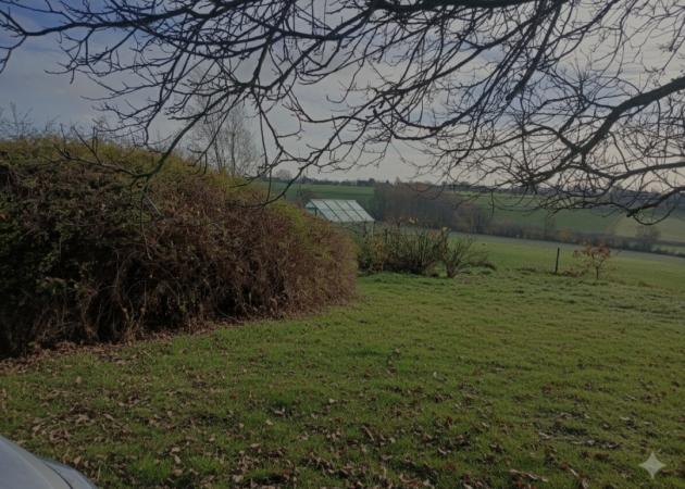 Terrain/jardin arrière avec une vue rurale très enchanteresse, calme et sereine. Vous pouvez disposer de table, chaises et transats ainsi que divers équipements extérieurs (barbecue...).