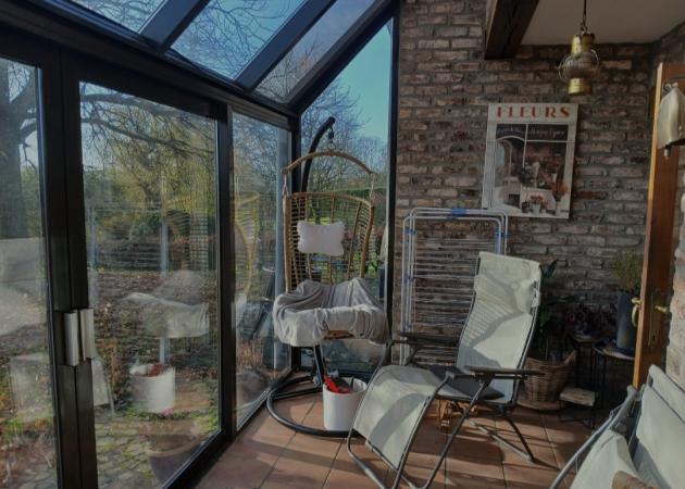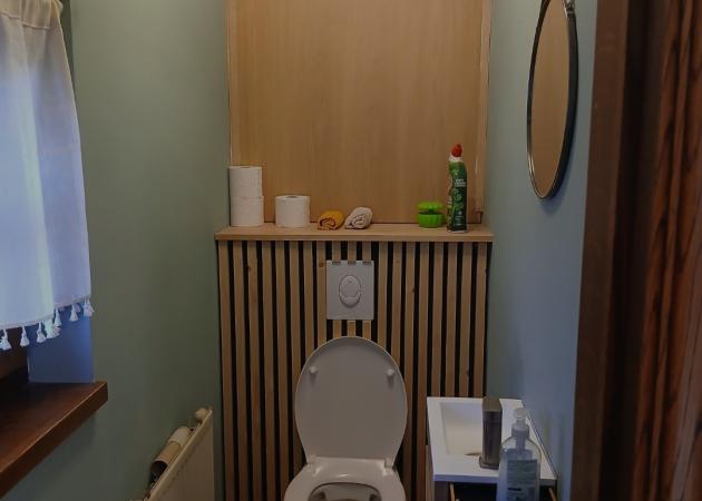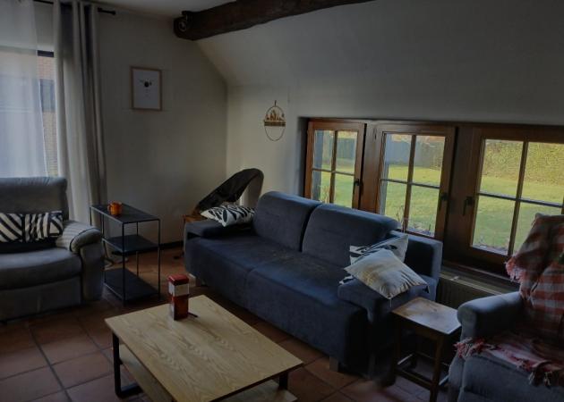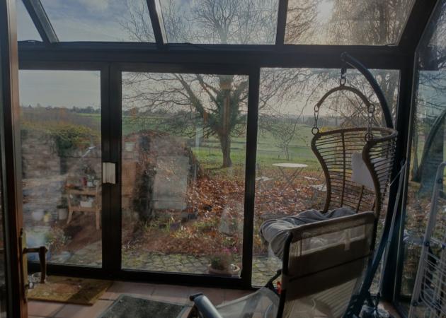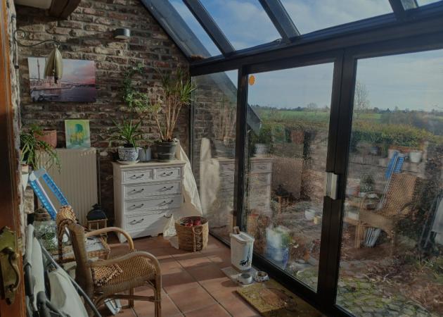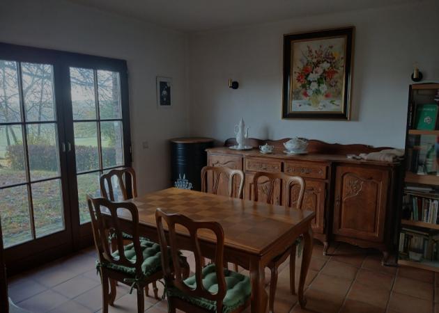 Le logement comprend un hall d'accueil donnant accès à la cuisine super équipée rénovée en 2024 ( plaques à induction, micro-ondes, four, frigo combi congélateur, machine à café, vaisselle...) qui donne elle-même accès à une véranda entièrement vitrée et très cosy donnant une vue et accès imprenables sur le terrain arrière et plongeante sur un paysage idyllique ainsi qu'un accès à une salle à manger puis un salon équipé (voir photo) avec feu ouvert et piano-bar.