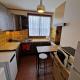~ cuisine avec électroménager (réfrigérateur avec partie congélateur, plaque de cuisson, four, hotte aspirante, micro-onde, cafetière, bouilloire, grille-pain, etc.), vaisselle et ustensiles de cuisine,