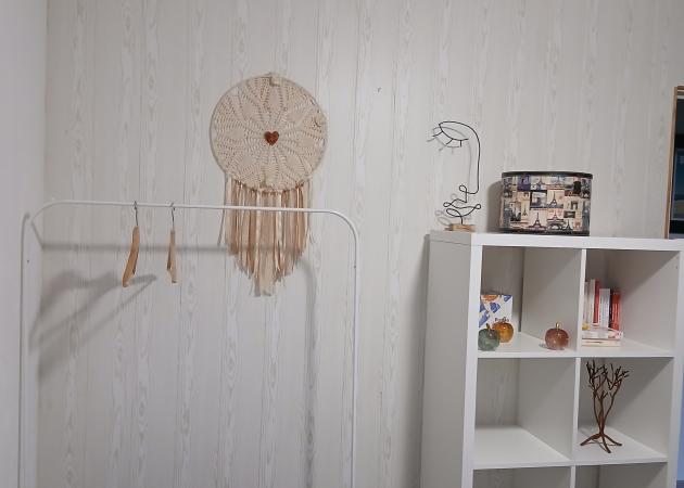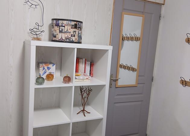 Maison de plein pieds, stationnement devant la maison. Garage pour vélo.