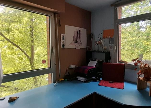 Pièce lumineuse avec lit UNE personne. Bon matelas. Linge nuit et toilette fournis. Grand bureau, commode. WIFI 4G.
