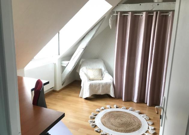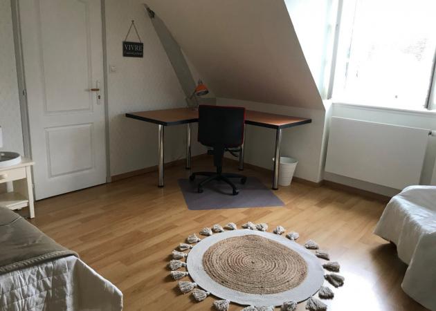 Chambre lumineuse, meublée à l'étage d'une maison individuelle, exposition plein sud.