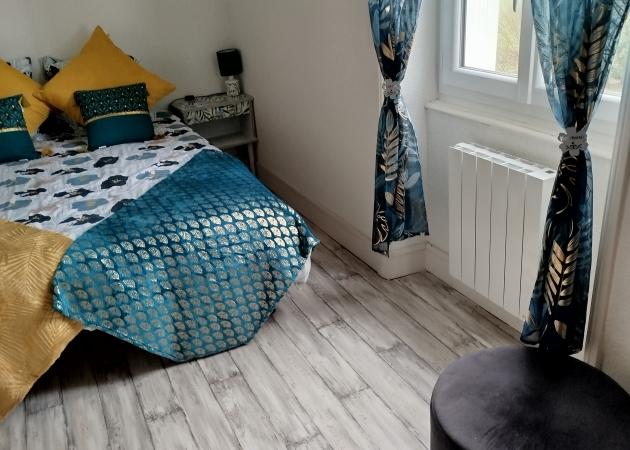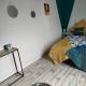Chambre bleue à louer dans une maison avec jardin
