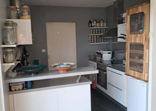 La cuisine est accessible et partagée avec nous afin que vous puissiez réchauffer des plats ou réaliser des préparations "rapides".