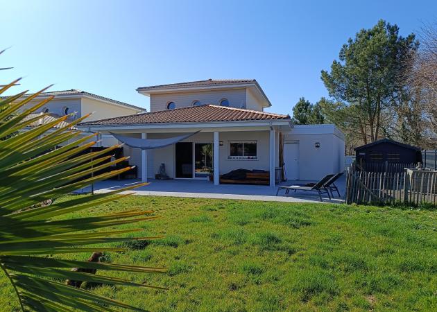 Mon logement est une maison contemporaine avec un joli jardin arboré et un grand potager.