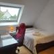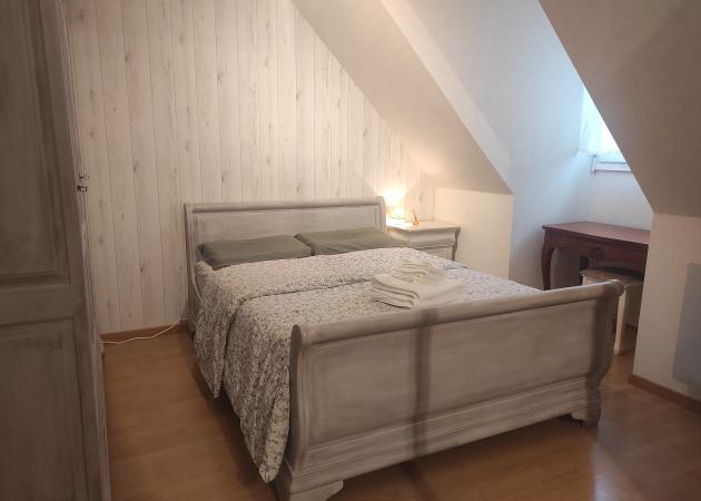 Premier étage : Chambres privées, salle de bain et WC partagés.