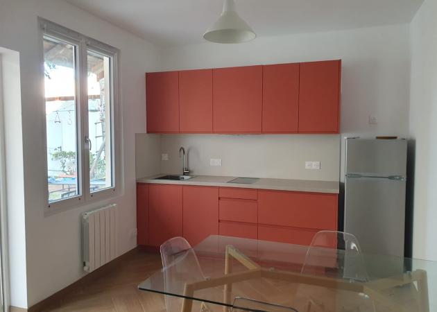 Le logement a son entrée indépendante, a été entièrement refait à neuf en 2025 et comprend une grande salle de bain avec lave-linge, une chambre et un séjour-cuisine aménagé (frigo, plaques, lave-vaisselle, machine à café).