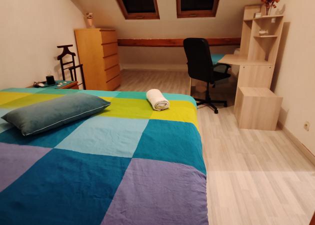 Location de 2 chambres meublées dans maison individuelle à étages, avec WC, salle de bain avec douche, cuisine avec plaques gaz, réfrigérateur, four.