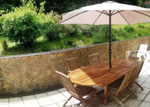 Grande terrasse avec salon de jardin, vue imprenable sur la forêt
