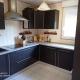 Cuisine moderne avec tout le nécessaire : frigo, congélateur, plaque vitrocéramique, four, micro-ondes, vaisselle, etc.