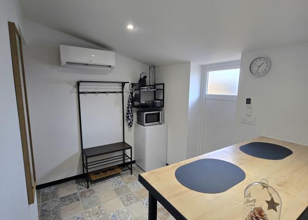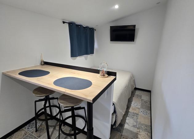Avec Wifi gratuit, TV connecté, un micro ondes, une penderie, un frigo avec [Coordonnées masquées]zer, une dolce gusto et ménagère complète pour 2 personnes.