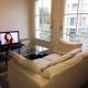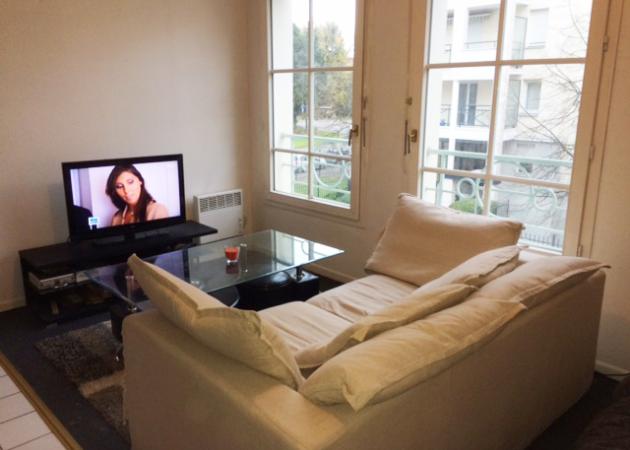 Il est très lumineux grâce à ses 2 grandes fenêtre. Il est équipé d'une télévision, d'un canapé, d'une table basse.