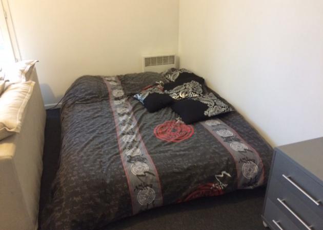 Le coin chambre se trouve dans la même pièce, derrière le coin salon. Elle est équipée d'un lit double (140x190) ayant un très bon matelas. Une grande penderie est également à disposition.