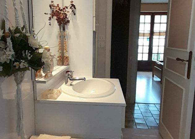 2) - A la semaine : un canapé lit pour 2 personnes, confortable, dans salon séparé de la salle à manger et de la cuisine par des paravents, vue sur magnolia, salle de bains à partager avec 1 locataire.