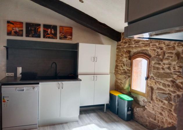 - Cuisine : à partager, équipée de four + plaque vitrocéramique, four à micro-ondes, machine à laver la vaisselle, machine à laver le linge