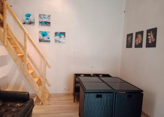 - Coin détente mezzanine doté d’un canapé convertible et d’une TV
