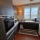 ~ cuisine avec électroménager (réfrigérateur avec partie congélateur, plaque de cuisson, four, hotte aspirante, micro-onde, cafetière, bouilloire, grille-pain, etc.), vaisselle et ustensiles de cuisine,