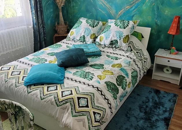 Chambre bleue à louer dans une maison avec jardin