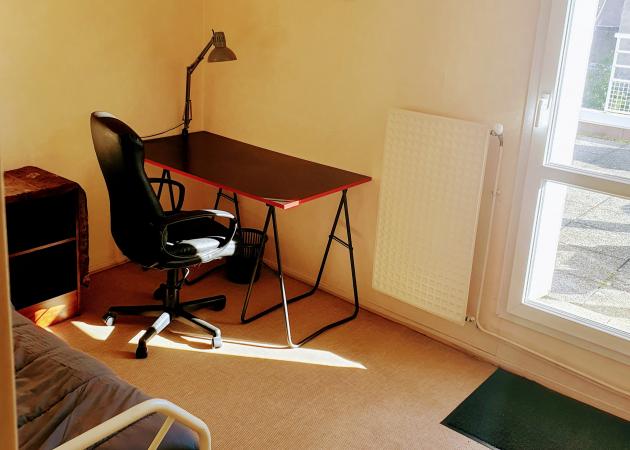 La chambre fait 11m2,elle est équipée d’1 lit 190x90,d’1 bureau et son fauteuil, 1 dressing.