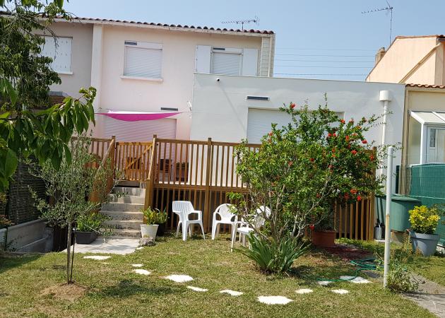 T4 rénové, 3 chambres, une salle d'eau, un jardin et une terrasse.