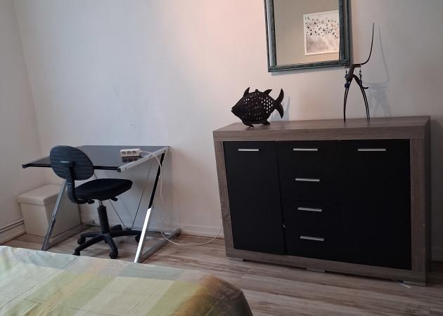 Chambre Meublée dans mon f4 duplex de 105m2, la chambre est au 1er étage, 3minutes à pied de l'arrêt cristallerie du trolley, facile de se garer gratuitement, chambre équipée d' un lit 2 places, un bureau, parquet flottant au sol, grand dressing,