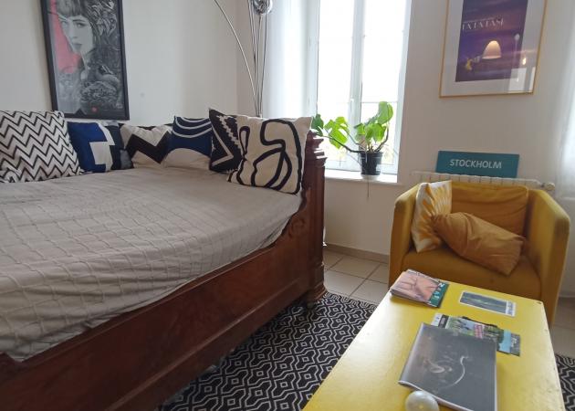Située en retrait sur une place calme, à quelques pas du centre ville et de toutes les commodités (commerces, transports, bars, restaurants, lieux culturels..)