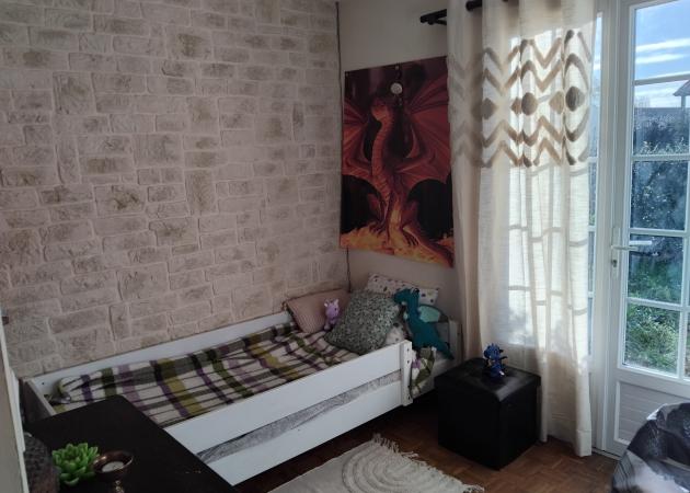 Petite chambre pour une personne, chez l'habitant donnant sur une partie de jardin. Accès possible aux espaces communs de la maison.