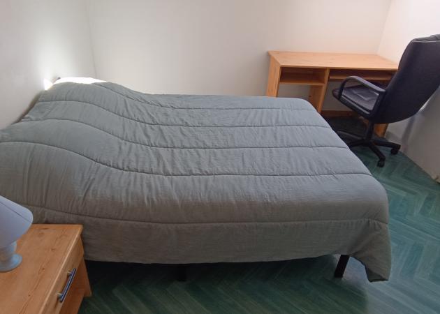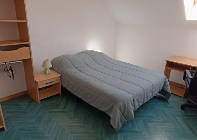 - Elle est très lumineuse et fait 12m2, il y a un lit double, une armoire avec penderie, chevet & Lampe de chevet, la couette et les draps sont fournis.